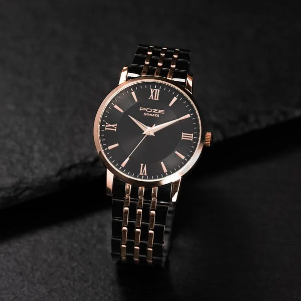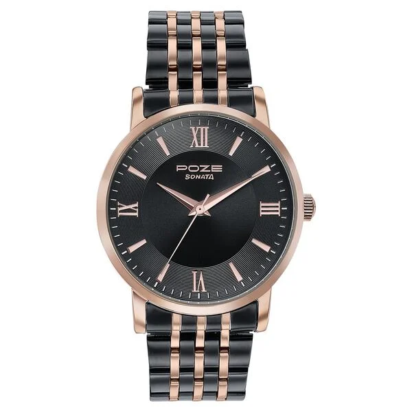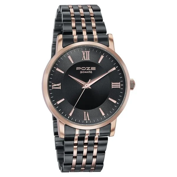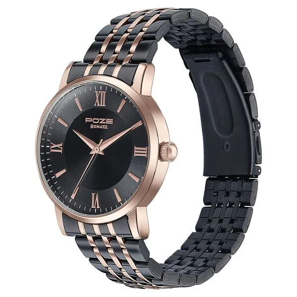 NameSonata Poze Quartz Analog Black Dial Metal Strap Watch For Men
